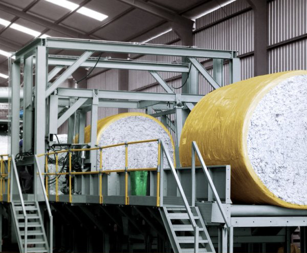 Retira a embalagem do fardo e deixa pronto para beneficiamento, possui proteções de segurança nos acionamentos, passarelas com chapas antiderrapantes escadas de acesso e corrimões para apoio do operário.